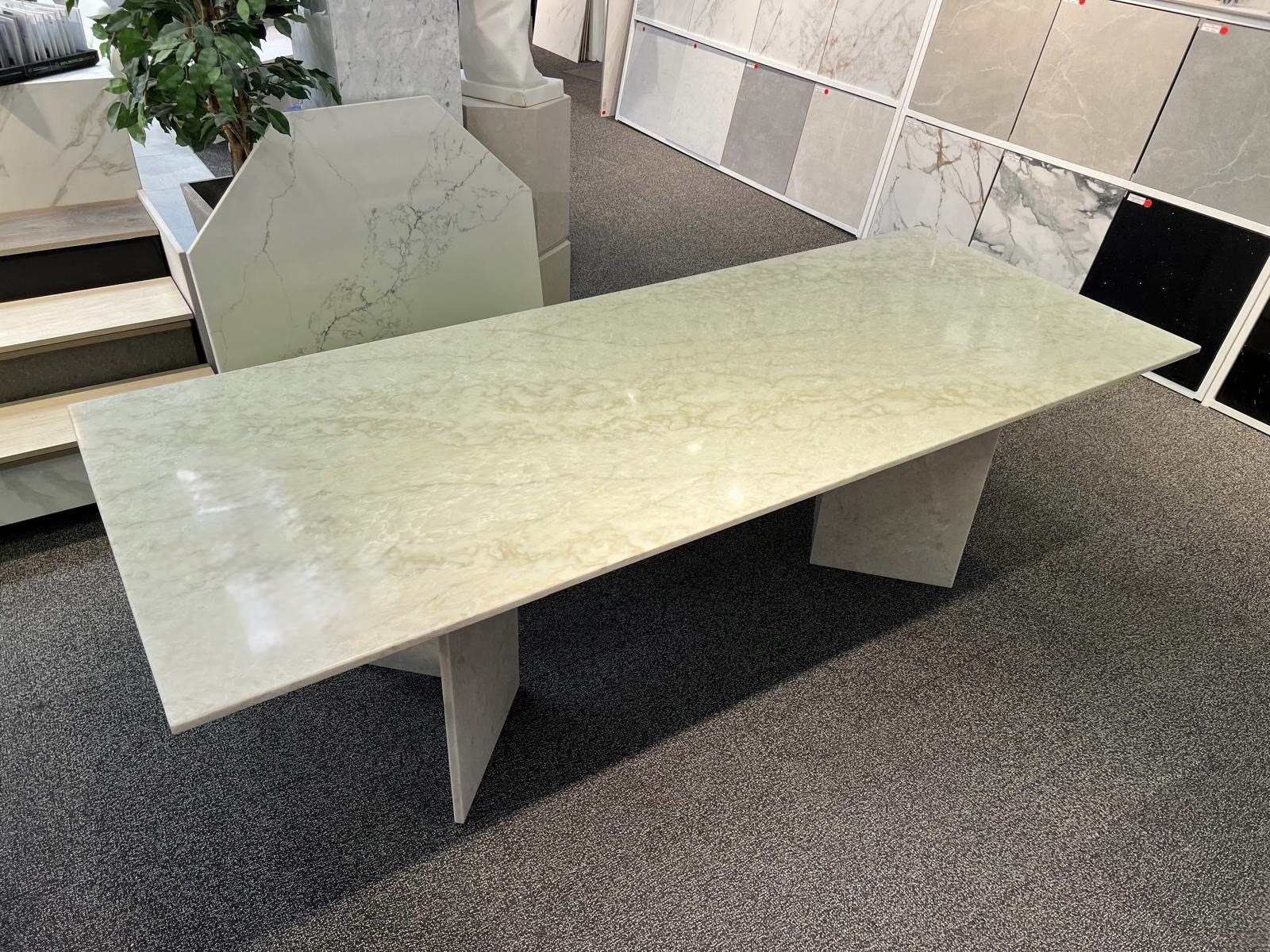 Matbord i komposit Glenco. Matbordet tillkommer med ett modern underrede i samma sten.